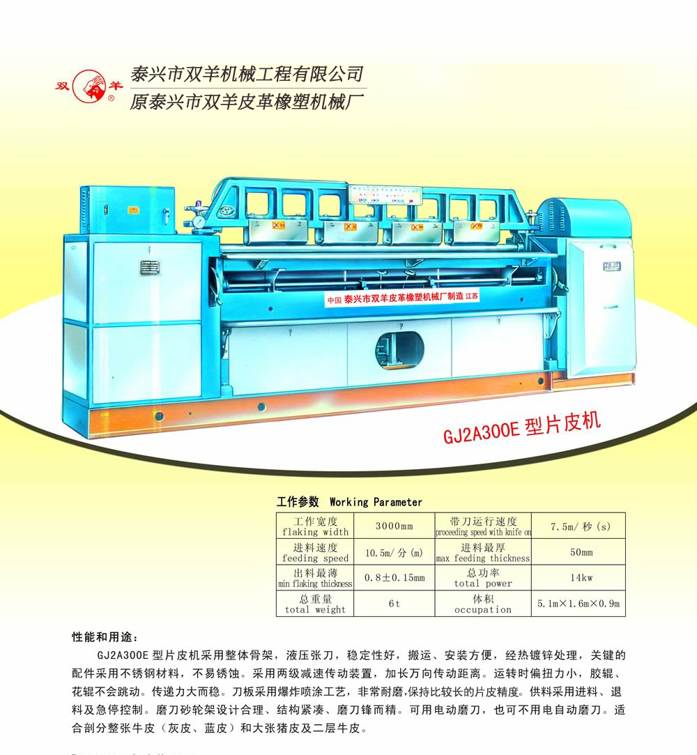 GJ2A300E型片皮機 發(fā)布者: 發(fā)布時間:2015-10-23 點擊量: 3073